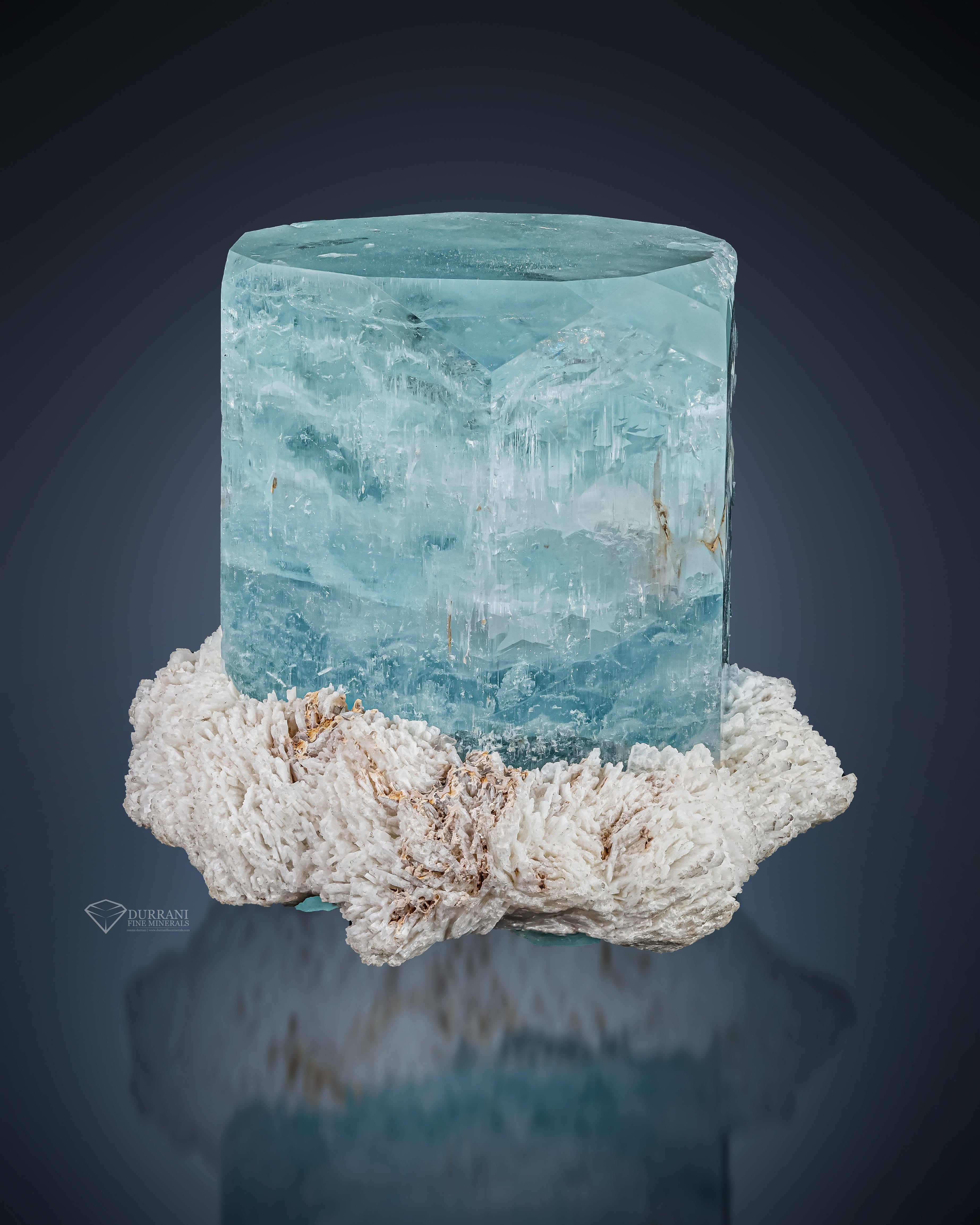 Presenting this lovely well-terminated and well-balanced deep sky blue Aquamarine sitting on a beautiful Albite matrix. The color, balance, and aesthetics of this piece are absolutely magnificent.