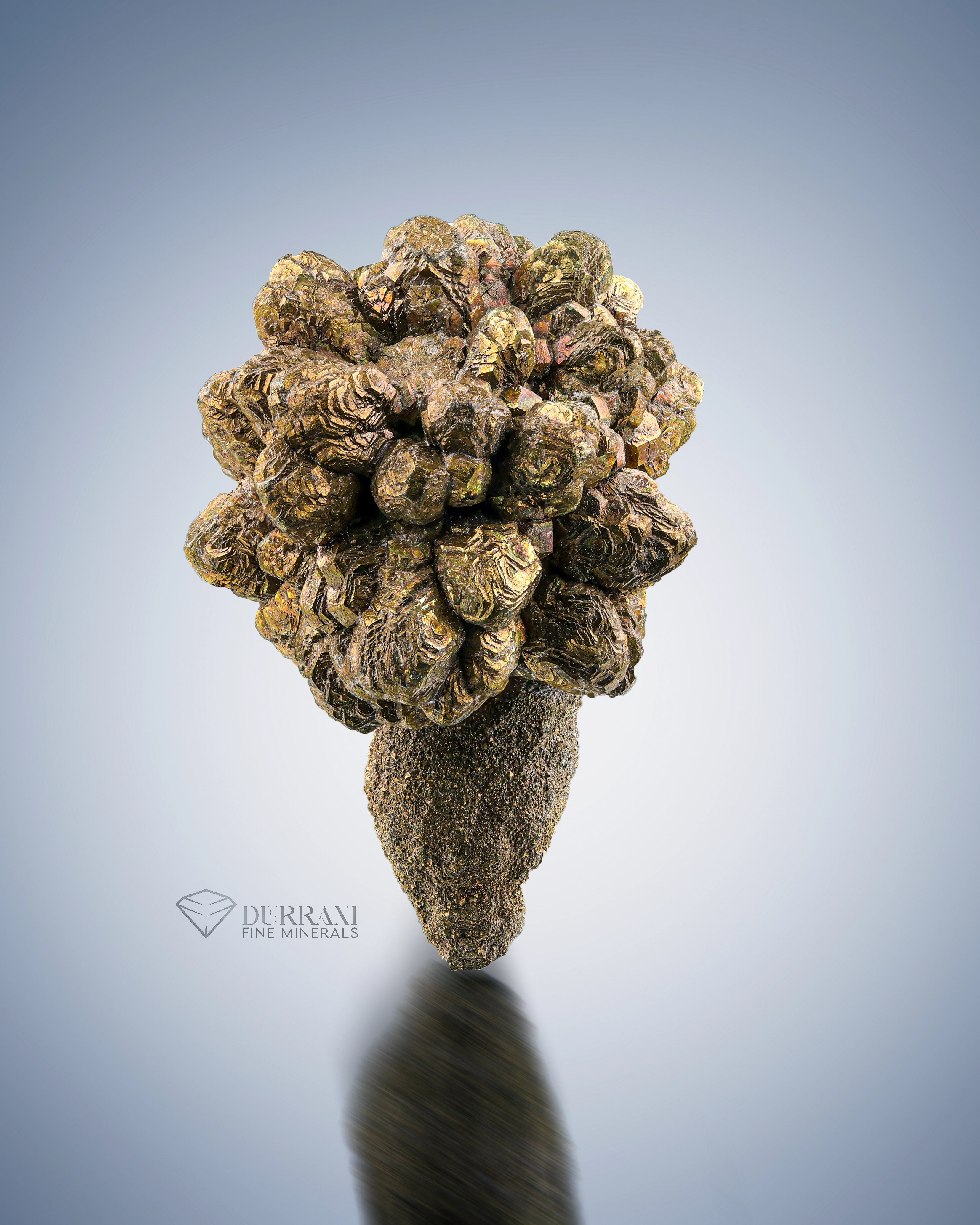 Presenting this Beautiful Flower Shape Golden Pyrite Cluster perched on matrix" amazing like a stunning natural wonder! Pyrite, with its golden luster and Botryoidal crystal structure, often forms captivating clusters that resemble flowers, especially when arranged on a contrasting matrix. The intricate formations and sparkling surfaces of pyrite clusters make them popular among collectors and admirers of natural beauty alike. The contrast between the golden pyrite and the matrix it sits on likely enhances its visual appeal, creating a striking display piece reminiscent of a delicate floral arrangement.