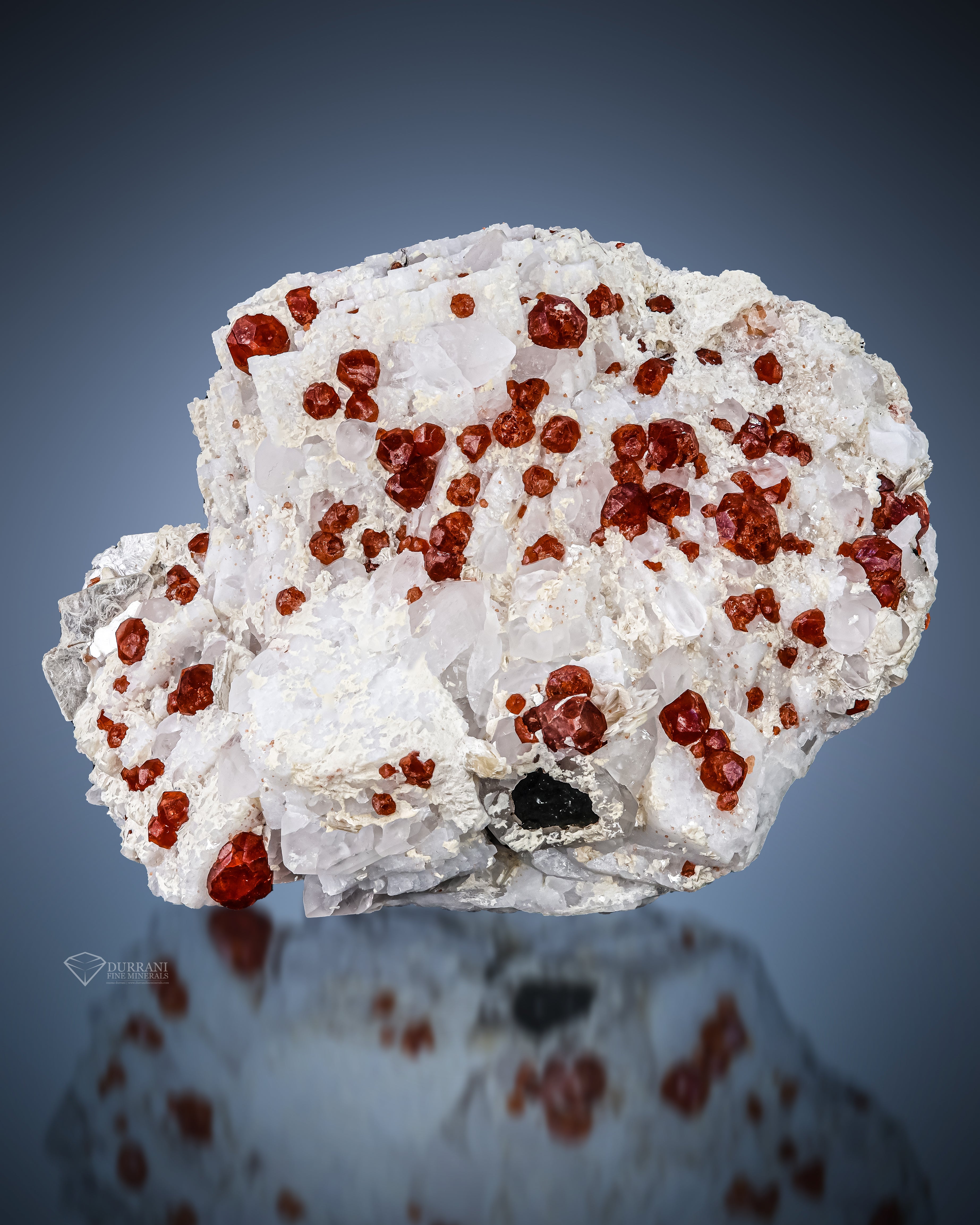 A really fabulous Hessonite Garnet beautifully grown on a white matrix. It has an incredible shape and amazing color contrast. A really nice piece in person