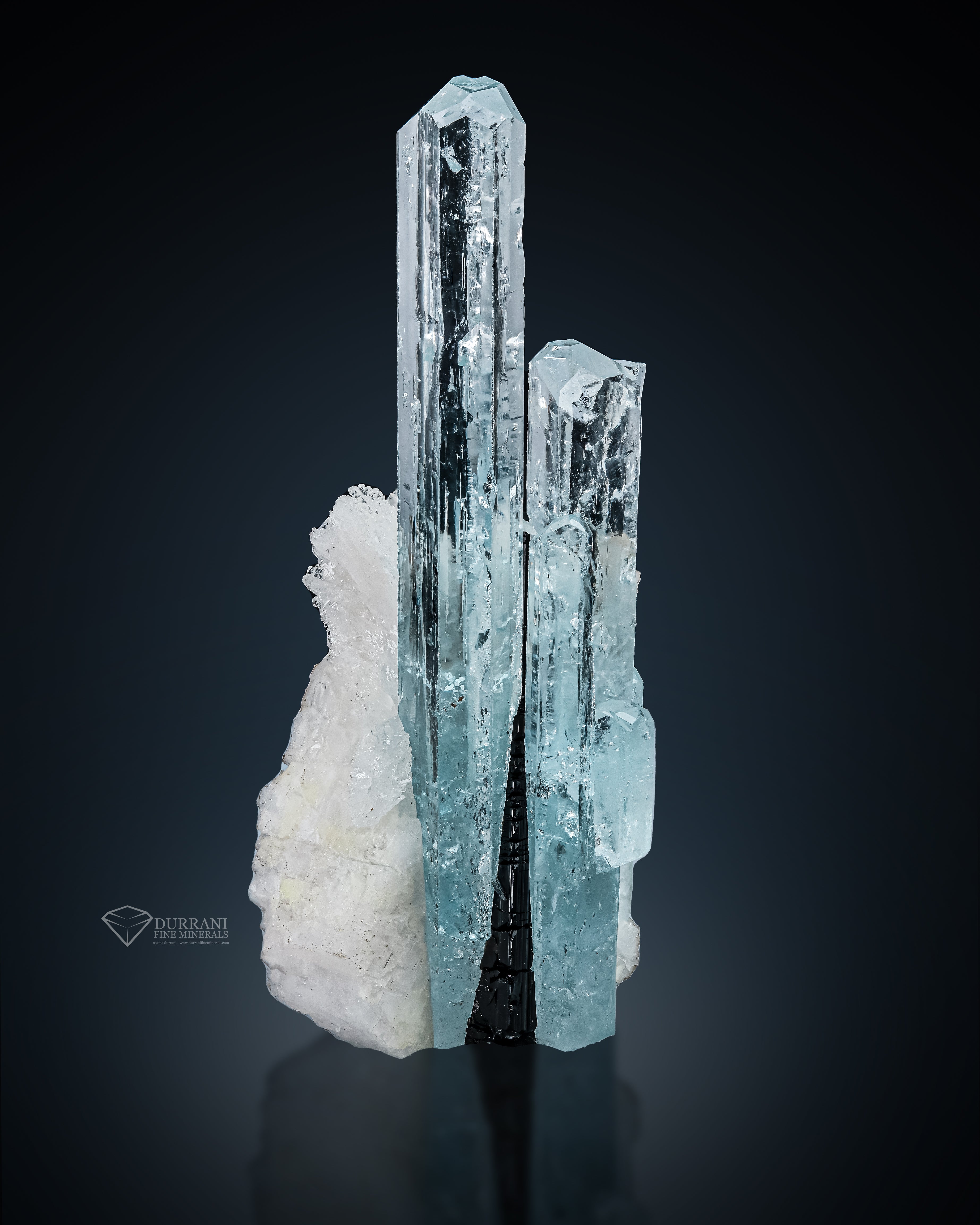 Specimen Name | Diamond Cut Terminated Aquamarine with Schorl on Feldspar |