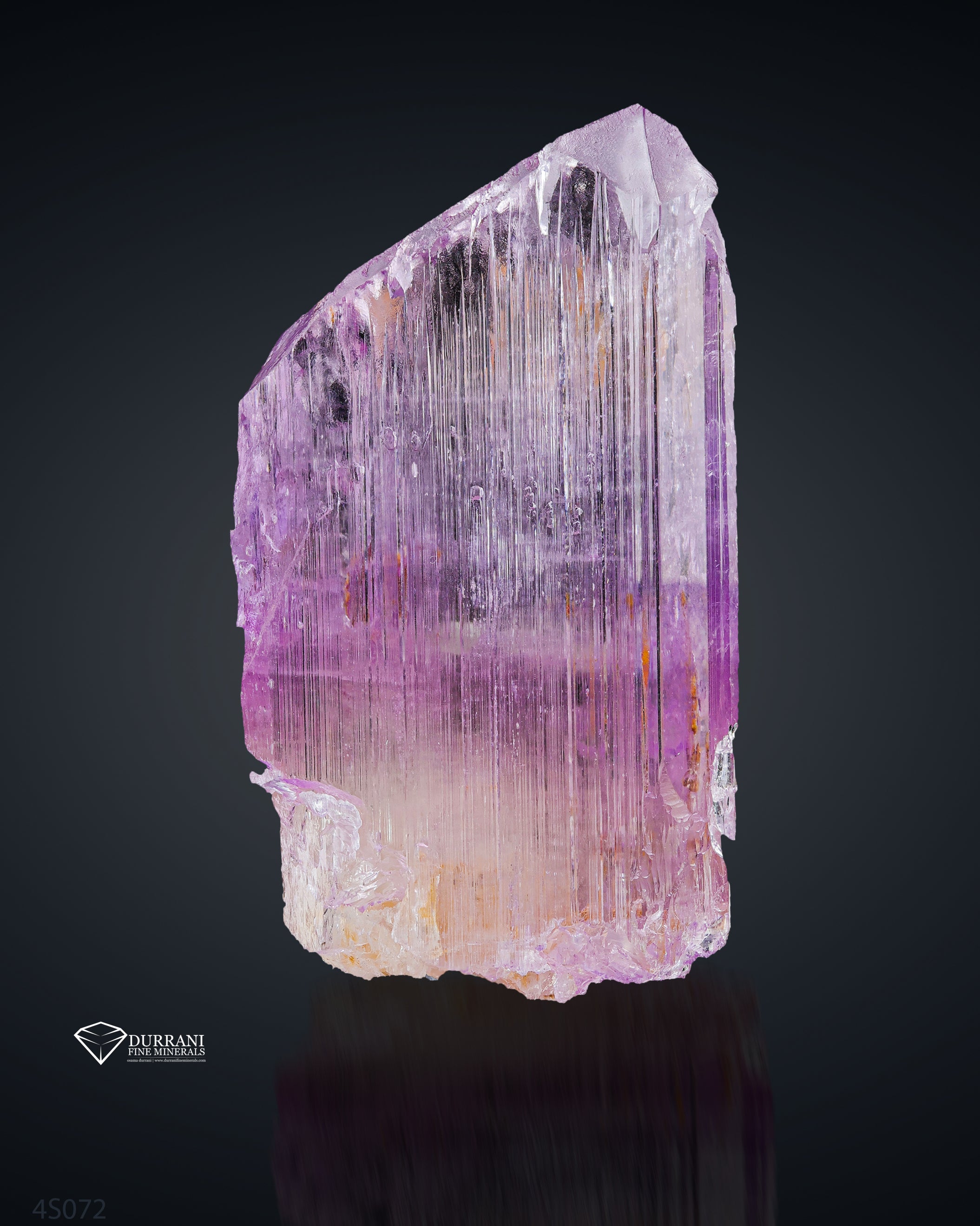 Gorgeous Double Terminated Pink Kunzite Crystal Dara-i-peach, Kunar Province, Afghanistan. Present this gorgeous Kunzite single crystal with vibrant natural pink color & sharp parallel striations. The crystal has amazing vibrant color on another axis too which is quite uncommon for such gem crystal in that perfection. It exhibits very good luster, exceptional crystal diaphaneity transparency. Perfect all around with no damage.