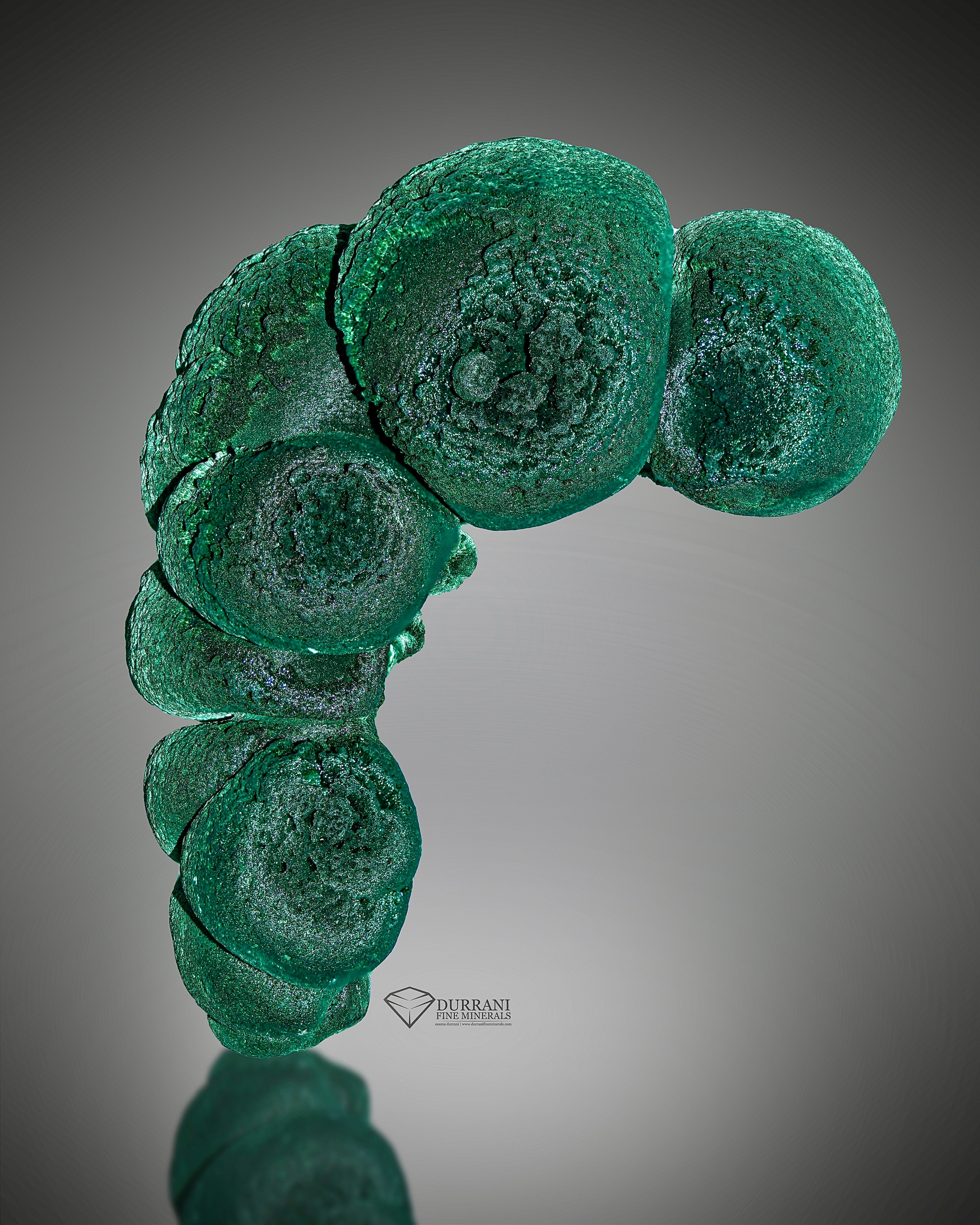 This exquisite malachite specimen exhibits a captivating chatoyancy, revealing eye-like patterns that shift with changes in lighting. Its complete, all-around form showcases shimmering botryoidal (rounded) formations of vibrant green malachite, making it an outstanding example within its size category. Sourced from the renowned Shilu Mine in Yangchun County, Yangjiang Prefecture, Guangdong Province, China.