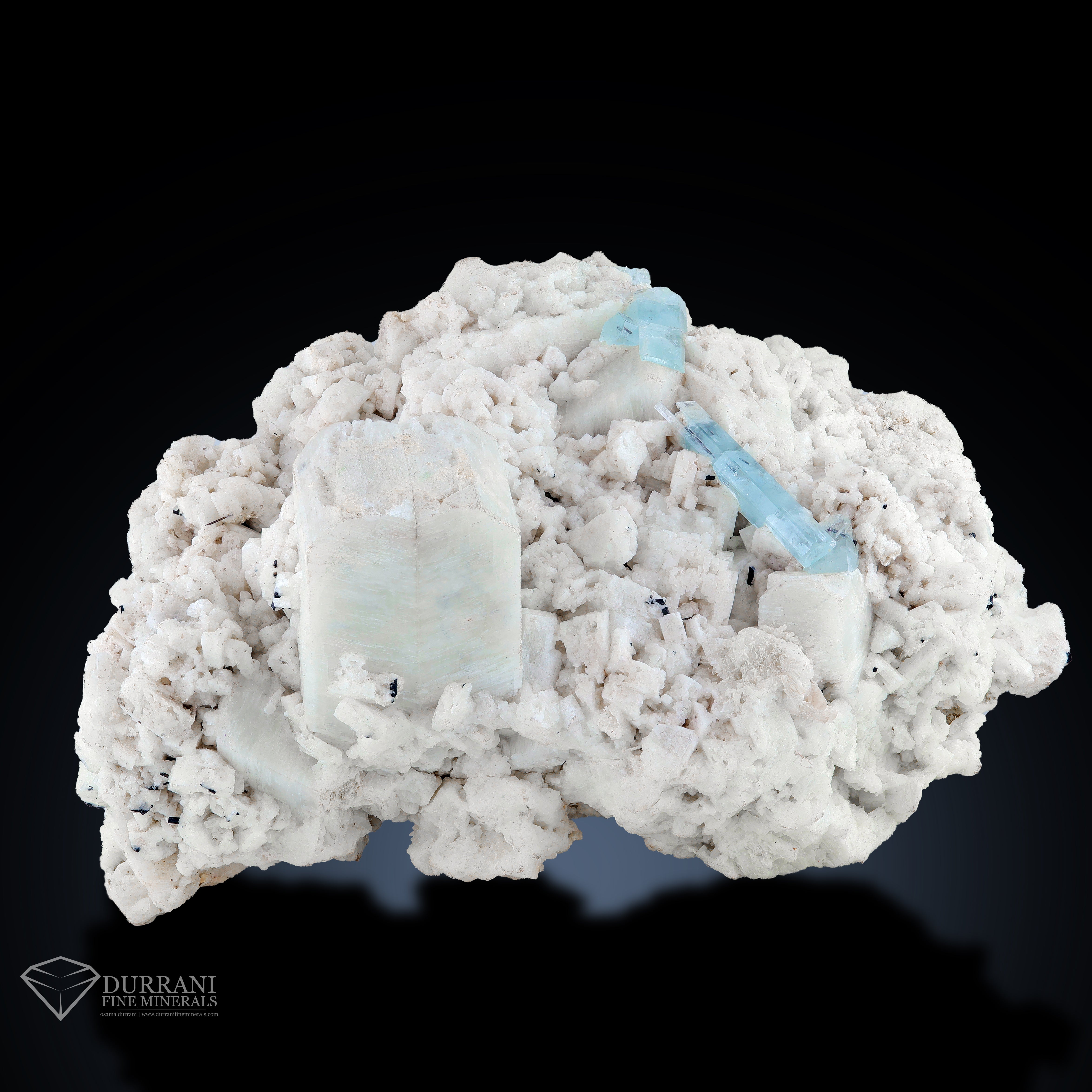 Presenting this incredible Microcline feldspar with aquamarine is a truly stunning combination. The intricate patterns and colors of the microcline mixed with the calming blues of aquamarine can create a visually striking piece. It must be a wonderful addition to any collection or display, showcasing the beauty of nature's creations. The Aquas are glassy, transparent to translucent displaying numerous small growth. The Microcline crystals are in excellent condition. This combination piece is well composed and well balanced.