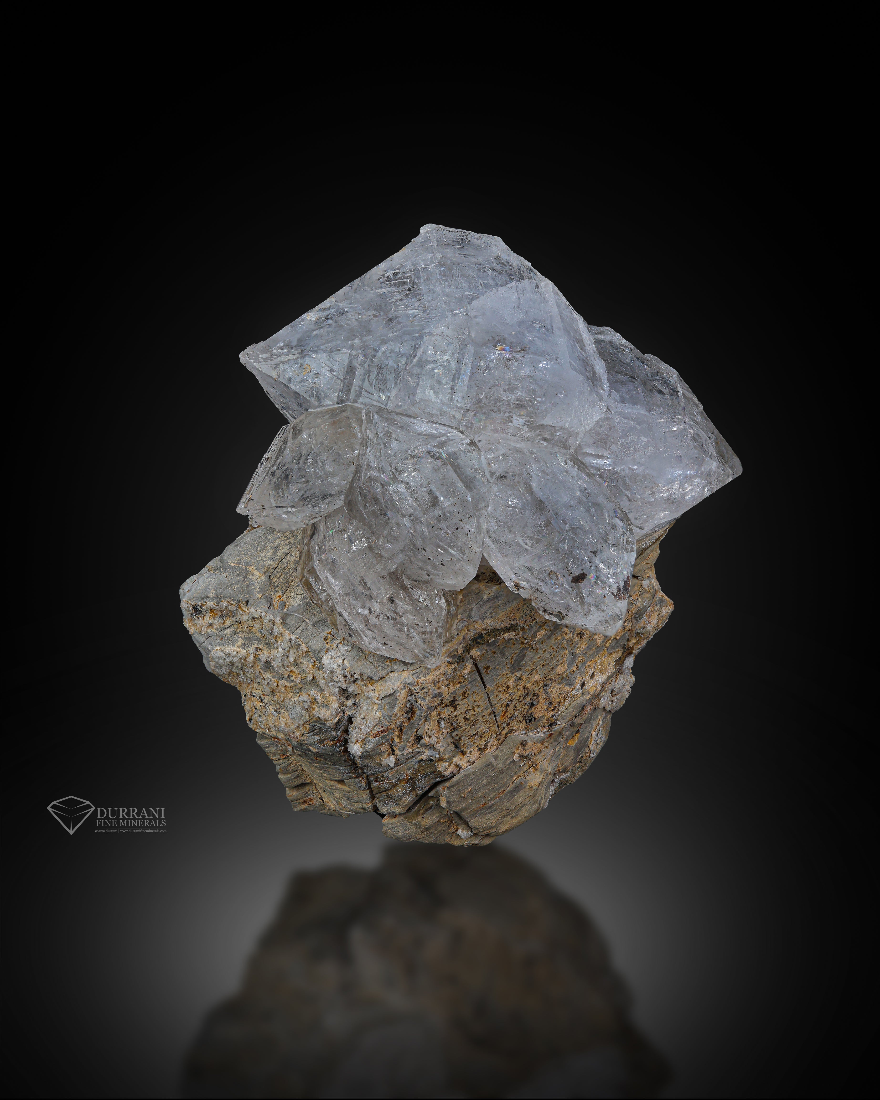 A beautiful cluster of transparent Window Quartz crystals arranged in a flower-like formation on natural matrix. Sourced from the mineral-rich Balochistan region, this piece showcases sharp terminations, excellent clarity, and a sparkling luster. A rare and eye-catching specimen perfect for any mineral collection.